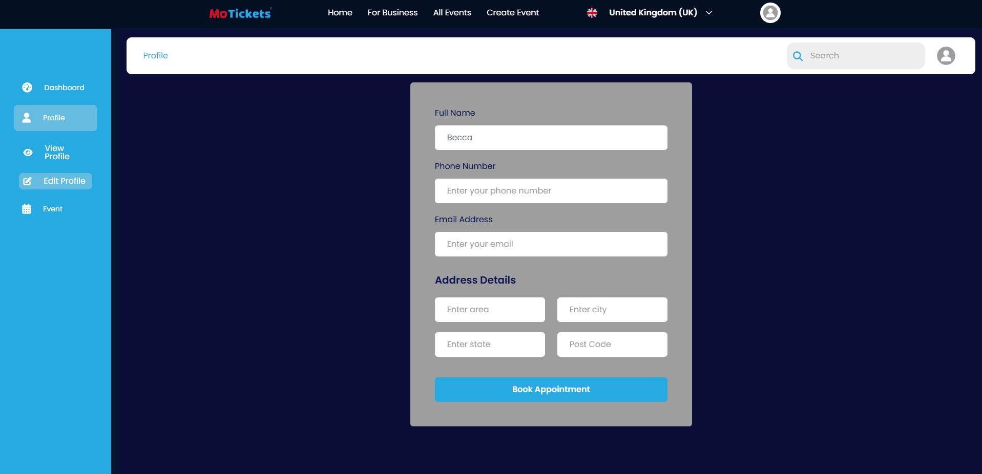 MOTICKET EXISTING WEBSITE PROFILE EDITING SCREEN